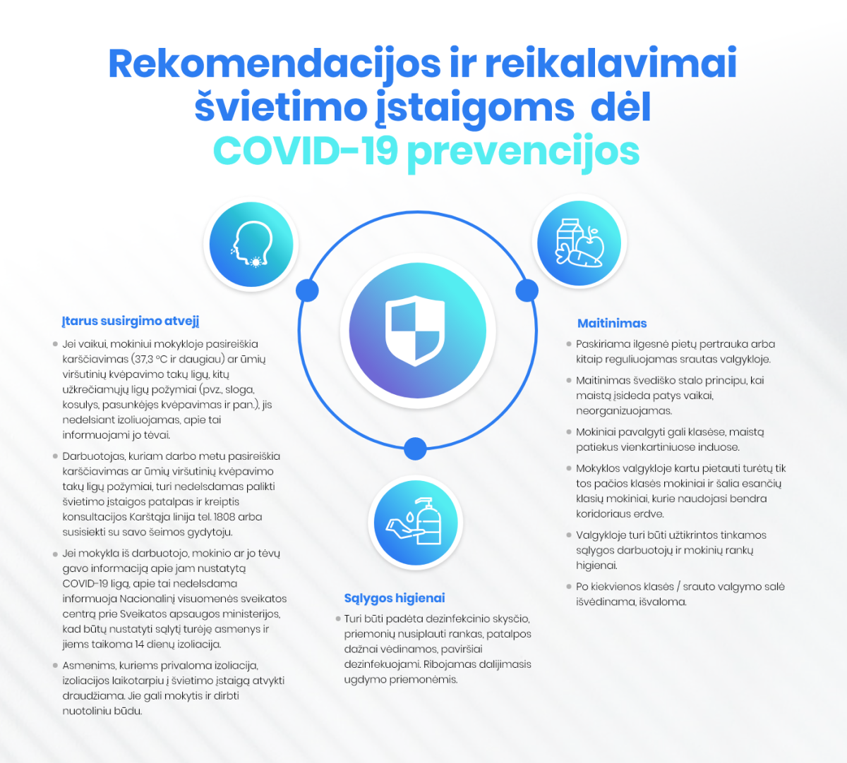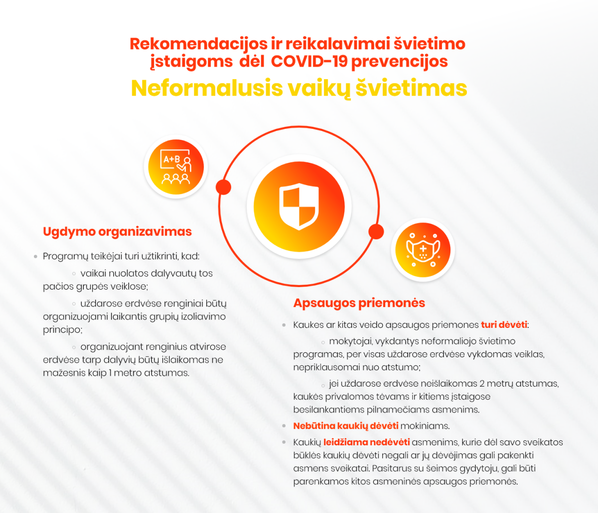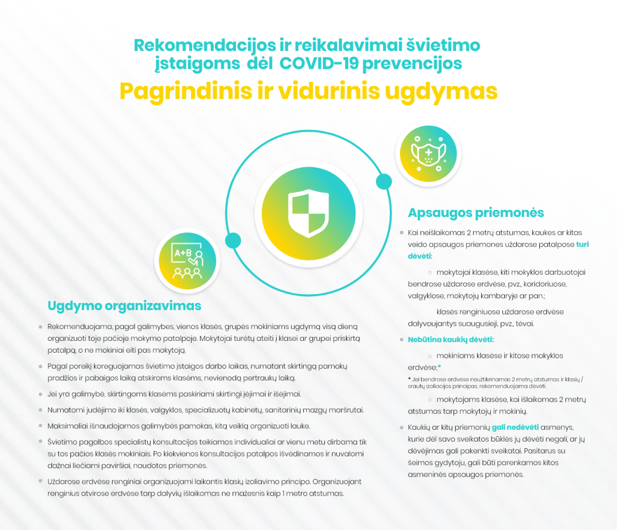 Informacija apie rekomendacijas ir reikalavimus švietimo įstaigoms dėl Covid-19 prevencijos